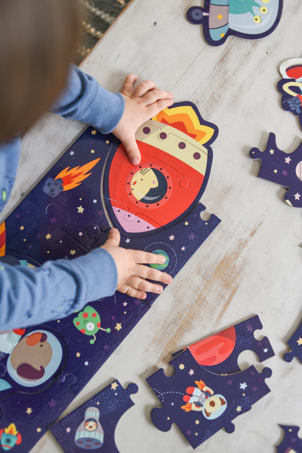 Pensado para niños y niñas desde los 3 años, sus piezas grandes, resistentes y con niveles de dificultad progresiva (2 a 5 piezas) favorecen la motricidad y el desarrollo cognitivo, mientras toda la familia se divierte armando juntos.
